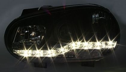 Φανάρια εμπρός led για Vw Golf IV – μαύρα , με λάμπες (Η1) – σετ 2τμχ.