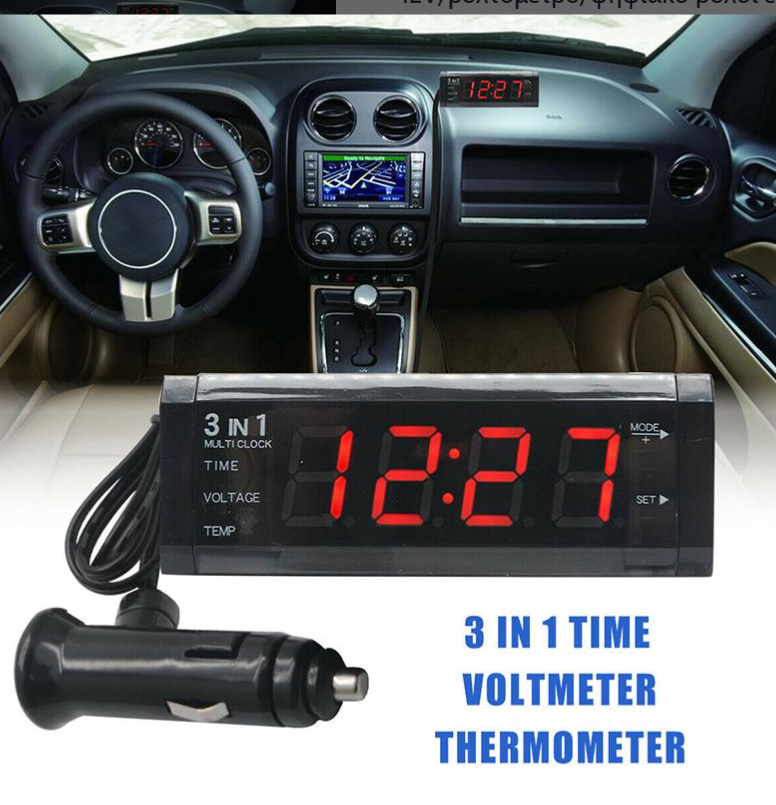 Ψηφιακό Ρολόι / Θερμόμετρο / Βολτόμετρο Αυτοκινήτου  3 in 1
