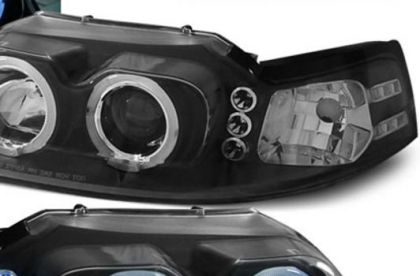 Φανάρια εμπρός led angel eyes για Ford Mustang (1998-2004) , μαύρα , με λάμπες (Η1) – σετ 2τμχ.