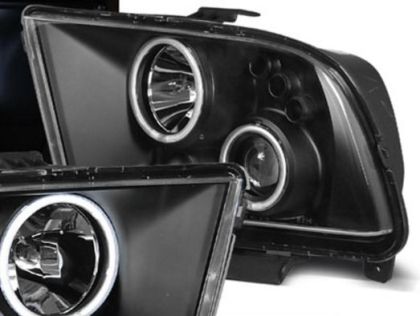 Φανάρια εμπρός led angel eyes για Ford Mustang (2004-2009) , μαύρα , με λάμπες (Η1) – σετ 2τμχ.