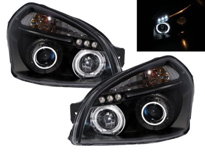 Φανάρια εμπρός angel eyes για Hyundai Tucson (2004+) – μαύρα , με λάμπες (Η1) – σετ 2τμχ.