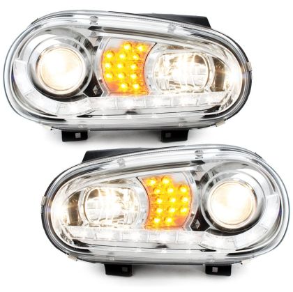 Φανάρια εμπρός led για Vw Golf IV – chrome , με λάμπες (Η1) – σετ 2τμχ.