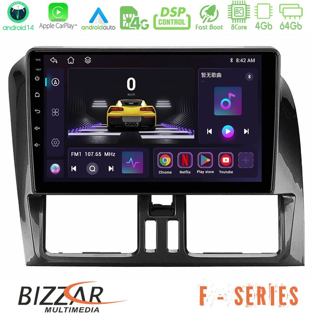Bizzar F Series 8Core Android14 4+64GB Volvo XC60 2009-2012 Navigation Multimedia Tablet 9″ Με Carplay & Android Auto