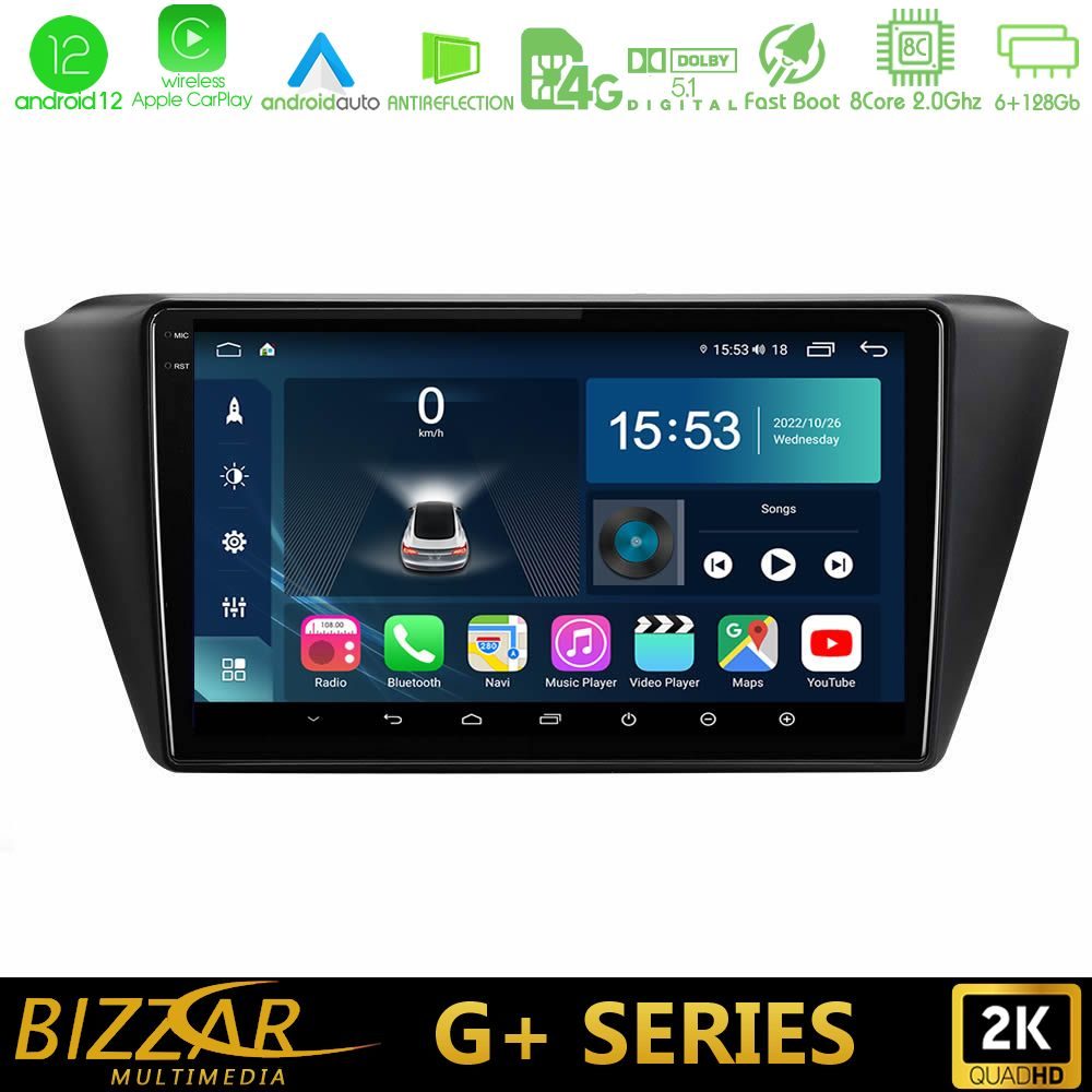 Bizzar G+ Series Skoda Fabia 2015-2021 8core Android12 6+128GB Navigation Multimedia Tablet 9″