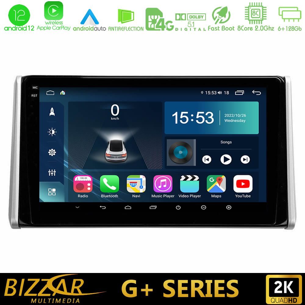 Bizzar G+ Series Toyota RAV4 2019-2023 8Core Android12 6+128GB Navigation Multimedia Tablet 10″