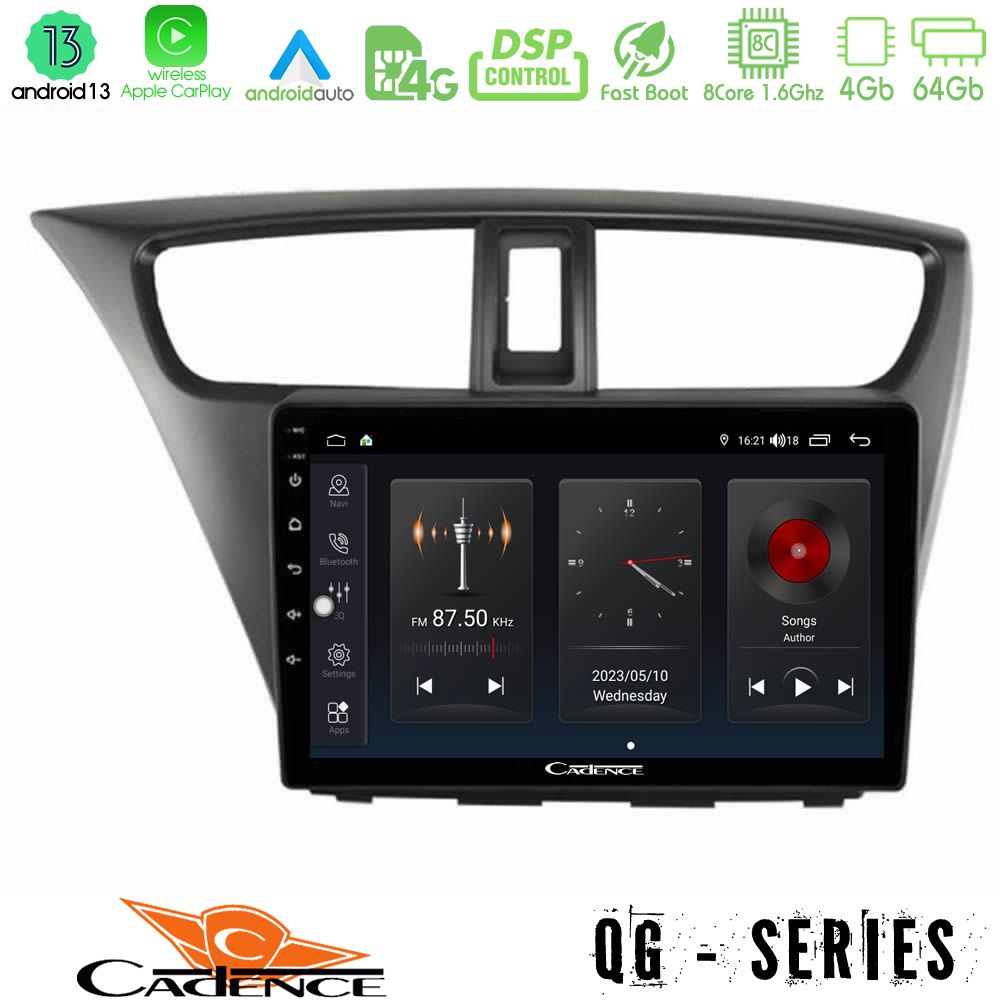 Cadence QG Series 8Core Android13 4+64GB Honda Civic Hatchback 2012-2015 Navigation Multimedia Tablet 9″