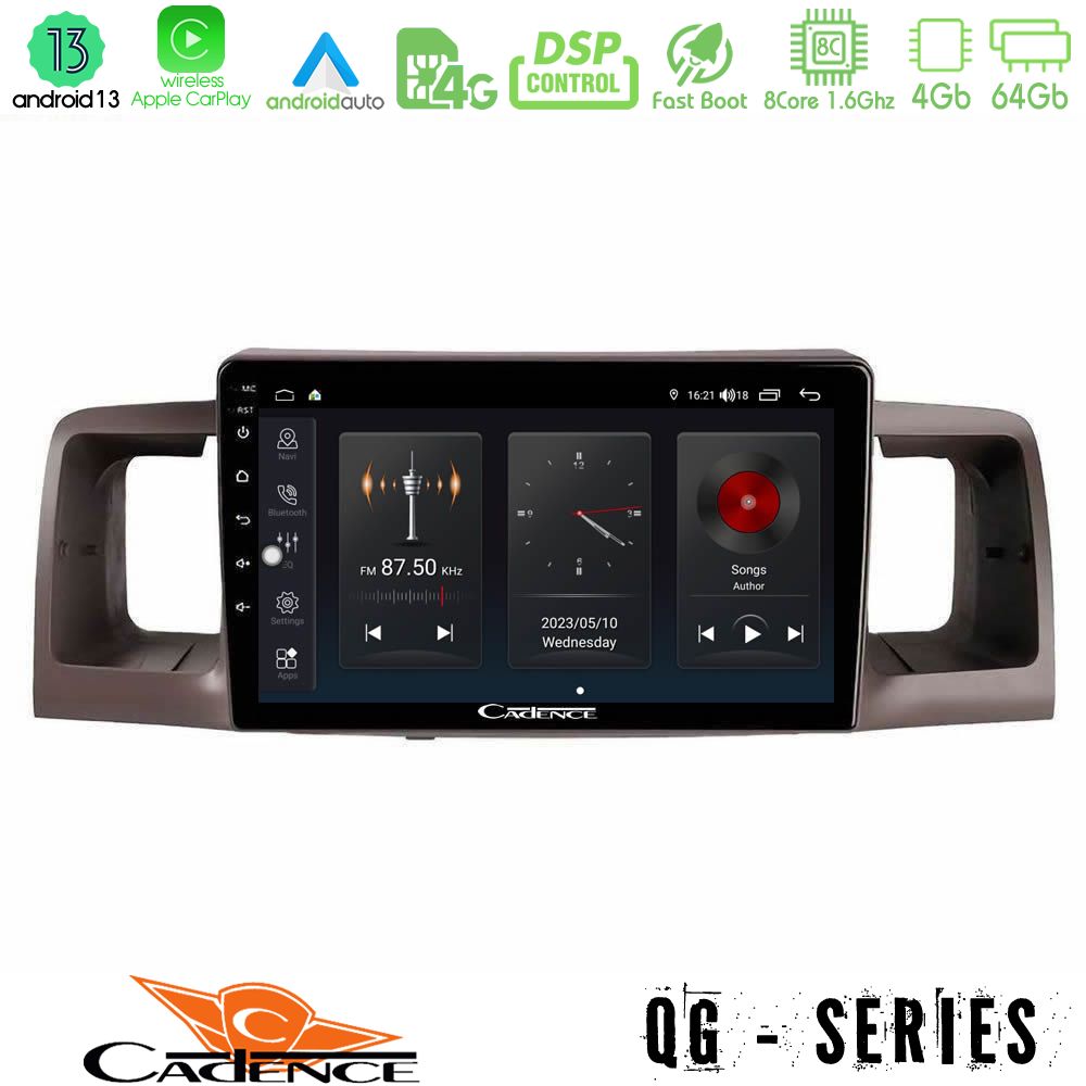 Cadence QG Series 8Core Android13 4+64GB Toyota Corolla 2002-2006 Navigation Multimedia Tablet 9″