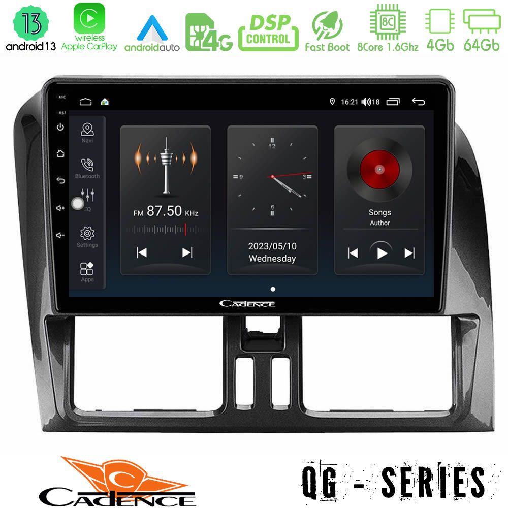 Cadence QG Series 8Core Android13 4+64GB Volvo XC60 2009-2012 Navigation Multimedia Tablet 9″