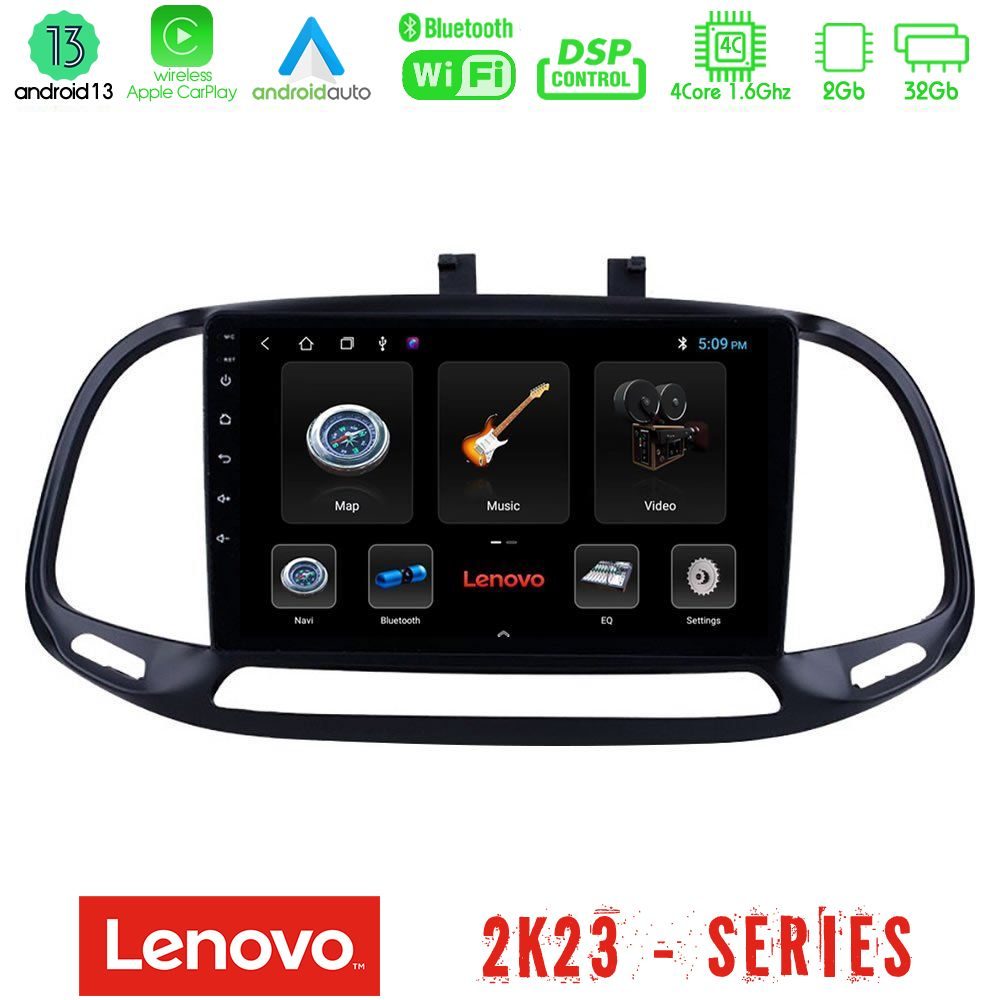 Lenovo Car Pad Fiat Doblo 2015-2022 4Core Android 13 2+32GB Navigation Multimedia Tablet 9″