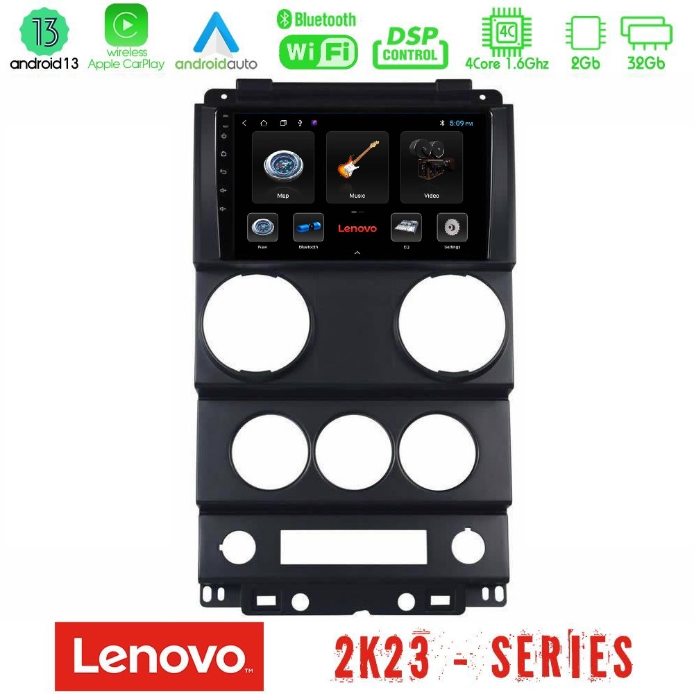 Lenovo Car Pad Jeep Wrangler 2008-2010 4Core Android 13 2+32GB Navigation Multimedia Tablet 9″