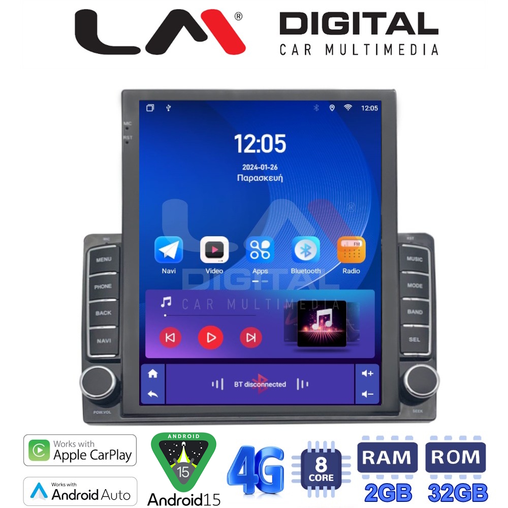 LM Digital – LM E8970 GPS Universal Οθόνη Αυτοκινήτου Tesla style (CarPlay/AndroidAuto/BT/GPS/WIFI/GPRS)