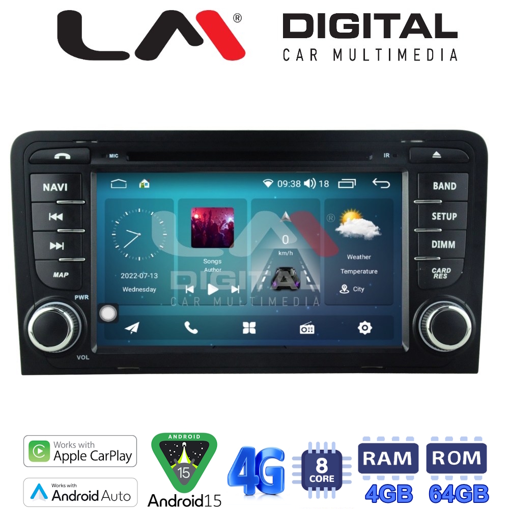 LM Digital – LM Q8049 GPS Οθόνη OEM Multimedia Αυτοκινήτου για Audi A3 2003>2012 (CarPlay/AndroidAuto/BT/GPS/WIFI/GPRS)