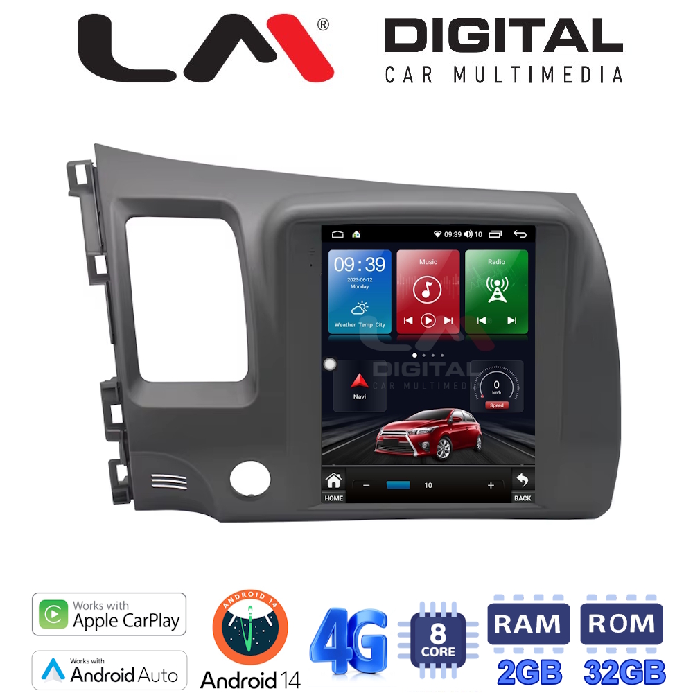 LM Digital – LM TR8644 GPS Οθόνη OEM Multimedia τυπου Tesla 9,7inch Honda Civic 4πορτο 2006 > 2012 (CarPlay/AndroidAuto/BT/GPS/WIFI/GPRS)
