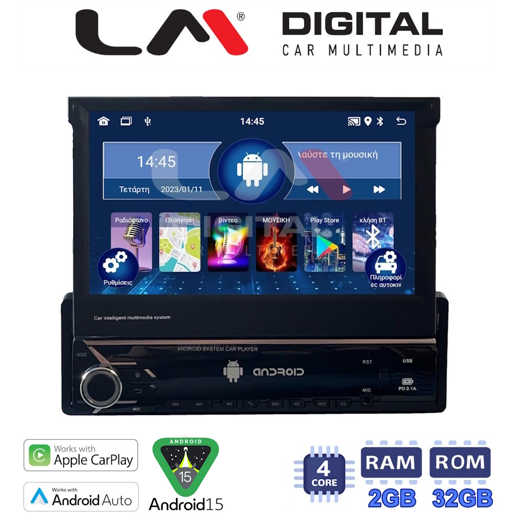 LM Digital – LM V4545 GPS Οθόνη OEM Multimedia Αυτοκινήτου για 1 Din universal (CarPlay/AndroidAuto/BT/GPS/WIFI/GPRS)