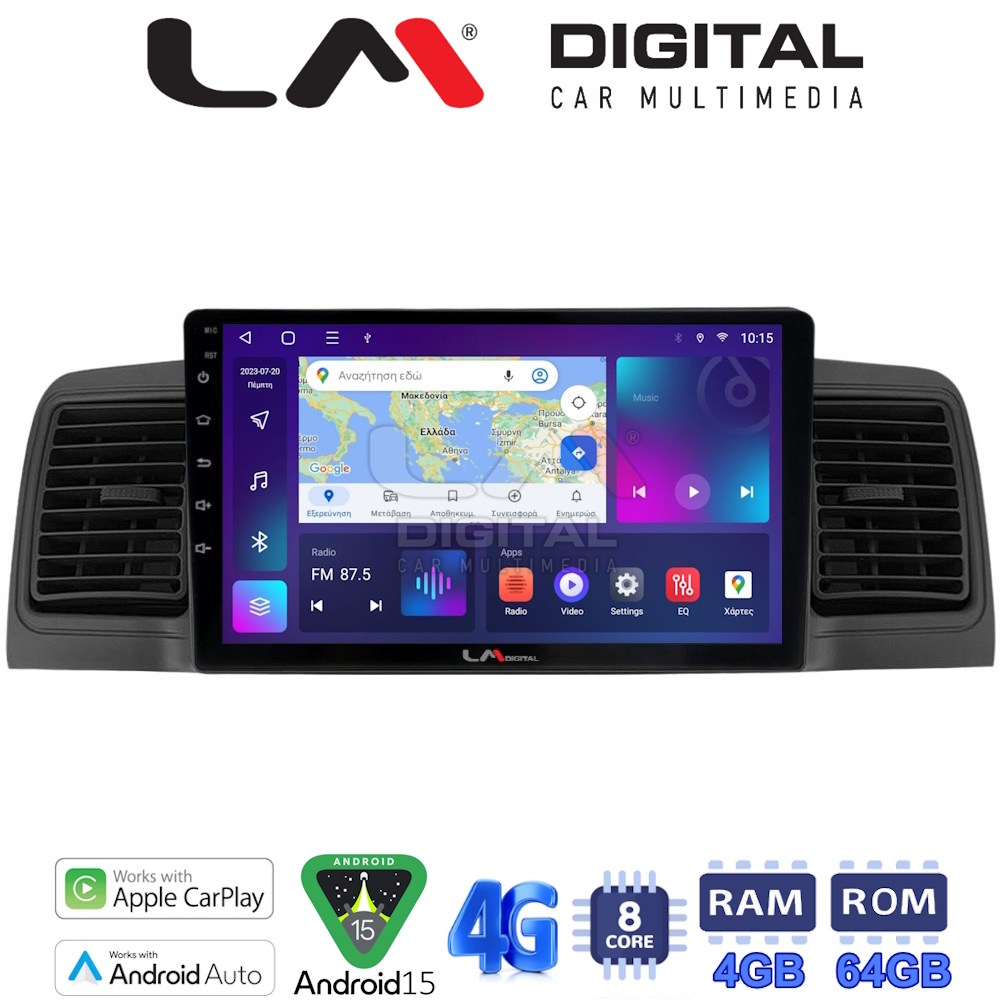 LM Digital – LM ZC8010B GPS Οθόνη OEM Multimedia Αυτοκινήτου για Toyota Corolla 2000-2007 (CarPlay/AndroidAuto/BT/GPS/WIFI/GPRS)