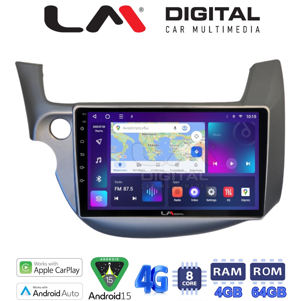 LM Digital – LM ZC8549G GPS Οθόνη OEM Multimedia Αυτοκινήτου για Honda Jazz 2008 > 2012 (CarPlay/AndroidAuto/BT/GPS/WIFI/GPRS)