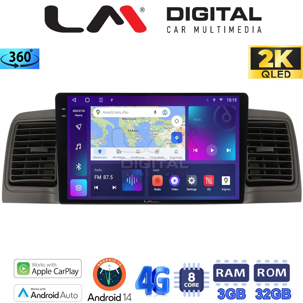 LM Digital – LM ZD8010 GPS Οθόνη OEM Multimedia Αυτοκινήτου για Toyota Corolla 2000-2007 (CarPlay/AndroidAuto/BT/GPS/WIFI/GPRS)
