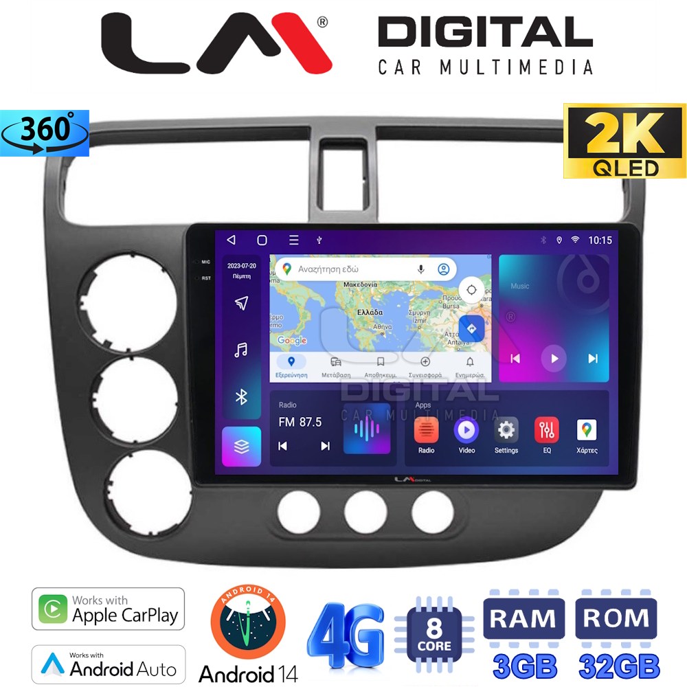 LM Digital – LM ZD8373 GPS Οθόνη OEM Multimedia Αυτοκινήτου για HONDA CIVIC 4πορτο 2001 > 2006 (CarPlay/AndroidAuto/BT/GPS/WIFI/GPRS)