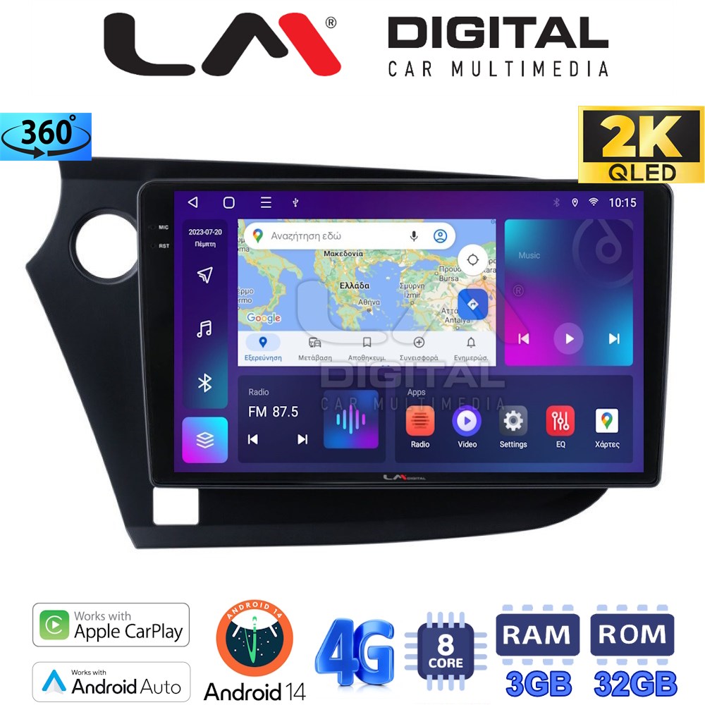 LM Digital – LM ZD8381 GPS Οθόνη OEM Multimedia Αυτοκινήτου για HONDA INSIGHT 2009>2014 (CarPlay/AndroidAuto/BT/GPS/WIFI/GPRS)