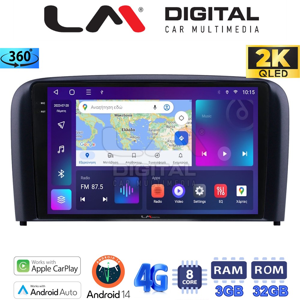 LM Digital – LM ZD8393 GPS Οθόνη OEM Multimedia Αυτοκινήτου για Volvo S80 2004 > 2006 (CarPlay/AndroidAuto/BT/GPS/WIFI/GPRS)