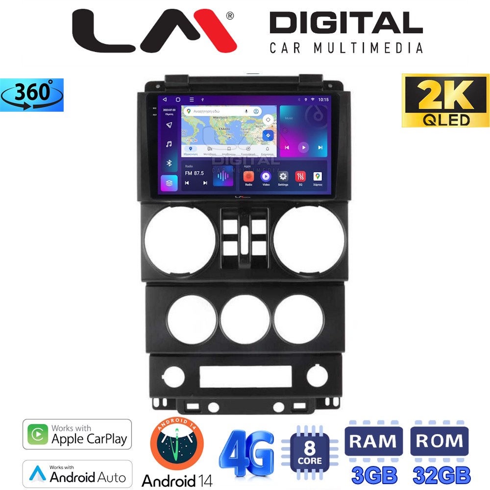 LM Digital – LM ZD8748 GPS Οθόνη OEM Multimedia Αυτοκινήτου για JEEP WRANGLER 2007 > 2011 (CarPlay/AndroidAuto/BT/GPS/WIFI/GPRS)