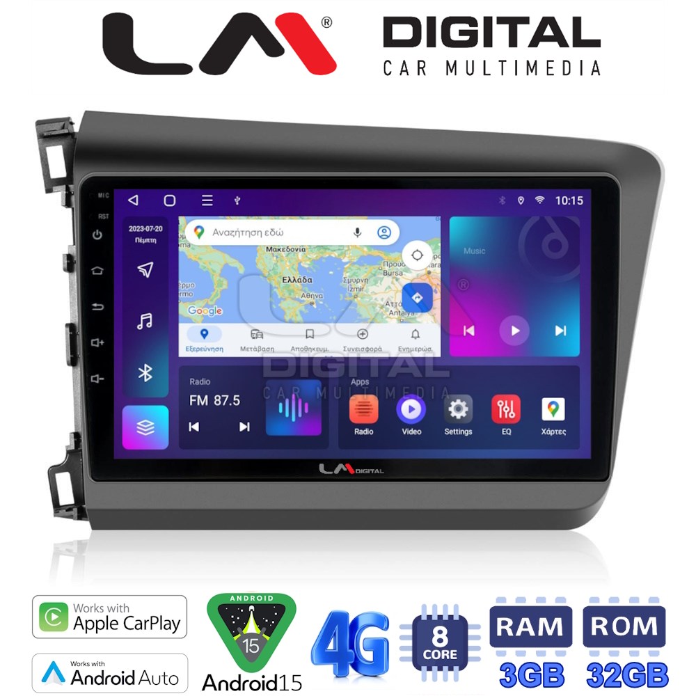 LM Digital – LM ZE8630 GPS Οθόνη OEM Multimedia Αυτοκινήτου για Honda Civic 2012 > 2016 (CarPlay/AndroidAuto/BT/GPS/WIFI/GPRS)