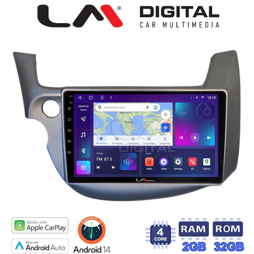 LM Digital – LM ZN4549G GPS Οθόνη OEM Multimedia Αυτοκινήτου για Honda Jazz 2008 > 2012 (CarPlay/AndroidAuto/BT/GPS/WIFI/GPRS)