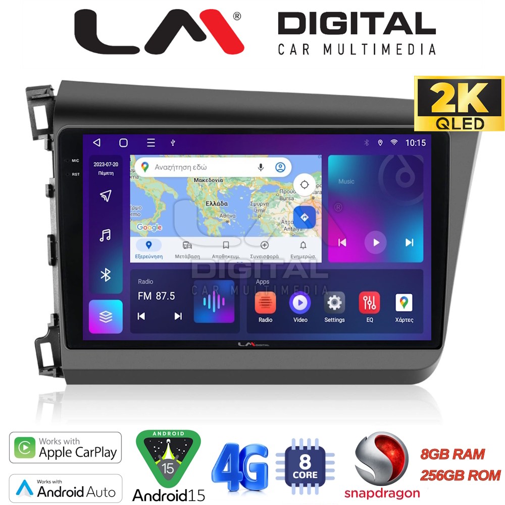 LM Digital – LM ZQ8630 GPS Οθόνη OEM Multimedia Αυτοκινήτου για Honda Civic 2012 > 2016 (CarPlay/AndroidAuto/BT/GPS/WIFI/GPRS)
