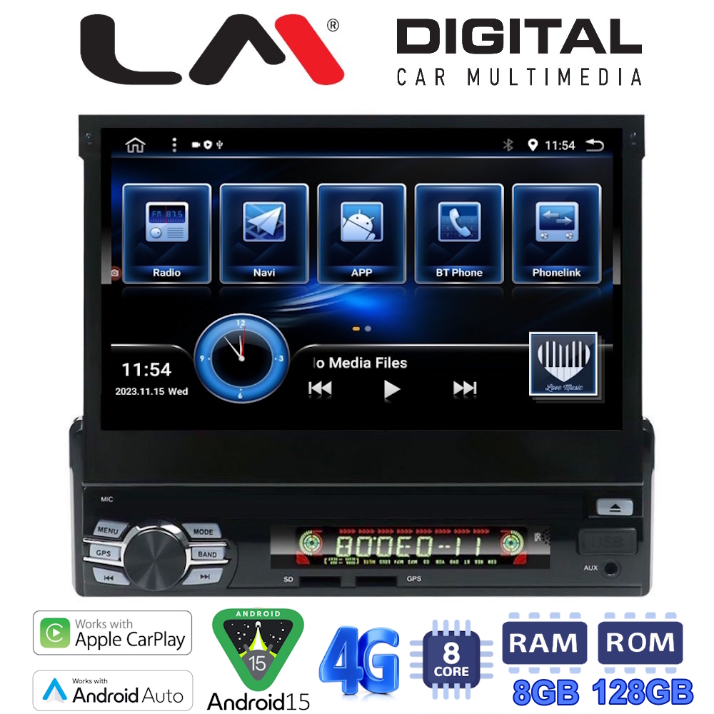 1din 7inc ANDROID 15 8core 8+128G CARPLAY – Android Auto GPS – Bluetooth