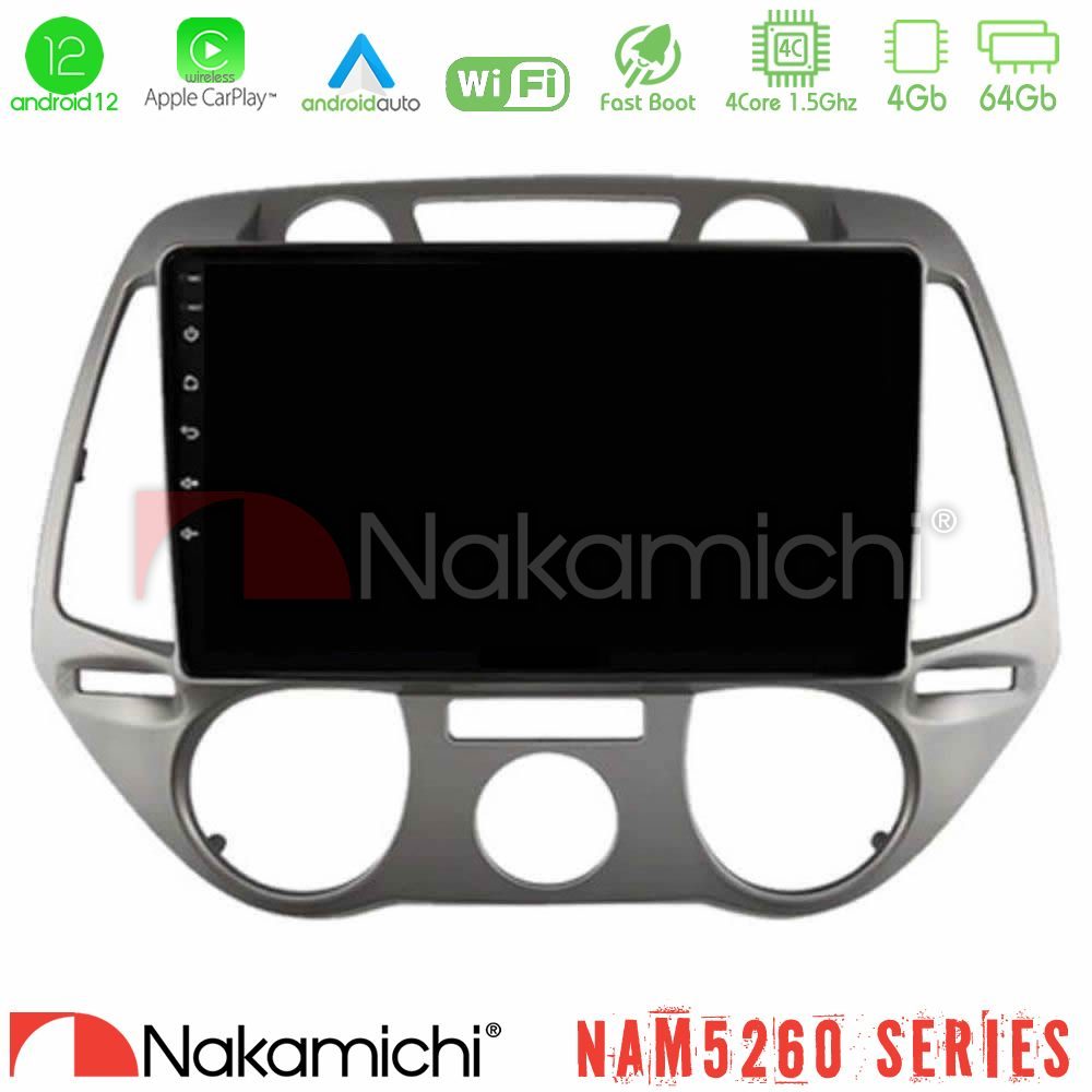 Nakamichi NAM5260 Series 4Core Android12 4+64GB Hyundai i20 2009-2012 Manual A/C Navigation Multimedia Tablet 9″ Με Carplay & Android Auto