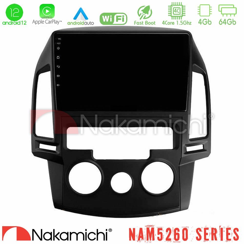 Nakamichi NAM5260 Series 4Core Android12 4+64GB Hyundai i30 2007-2012 Manual A/C Navigation Multimedia Tablet 9″ Με Carplay & Android Auto