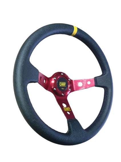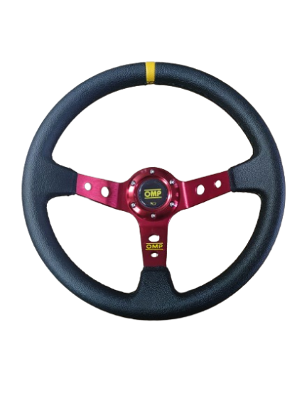 OMP – αγωνιστικό τιμόνι βαθύκωνο μαύρο/κόκκινο δερμάτινο